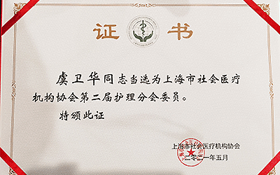 随后,表彰大会宣布了上海市社会医疗机构协会第二届护理分会换届选举结果,上海中大肿瘤医院护理部主任虞卫华同志当选为上海市社会医疗机构第二届护理分会委员、护士长黄秋香同志当选为上海市社会医疗机构第二届护理分会常务委员,协会领导向他们颁发聘书。