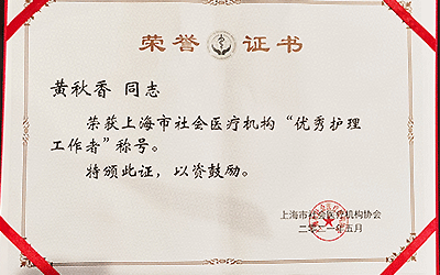 大会通报表彰了2021年上海市社会医疗机构“优秀护理工作者”荣誉称号获得者,上海中大肿瘤医院黄秋香同志荣获上海市社会医疗机构“优秀护理工作者”称号,协会领导给获奖者分别颁发了证书。